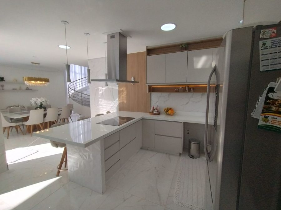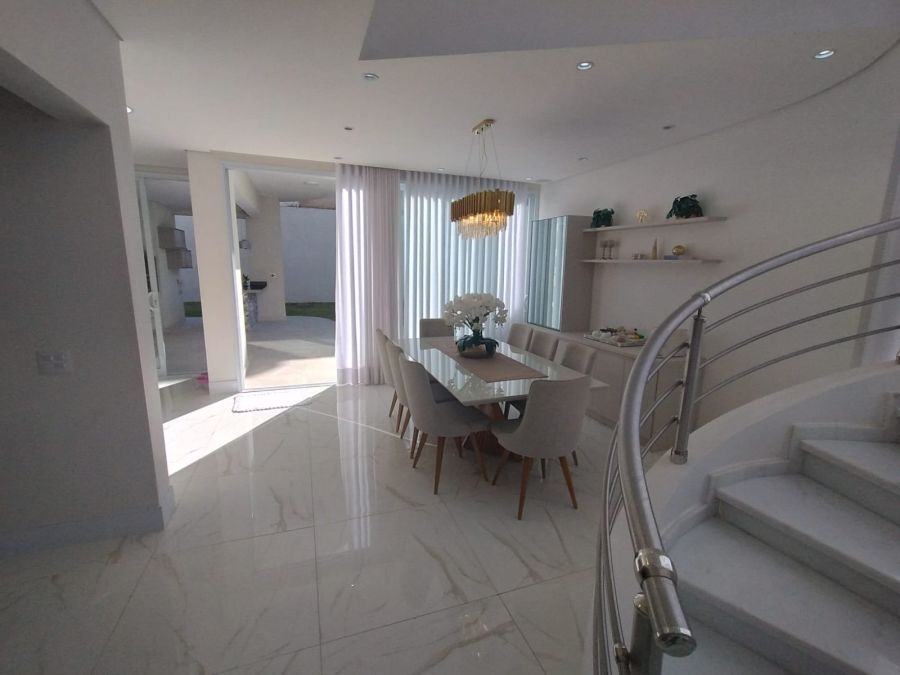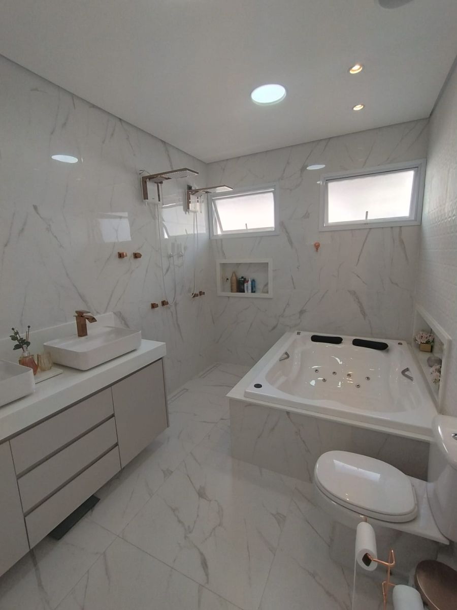Sala de estar, home theater, jantar, área gourmet, suíte master e banheiro da suíte master
