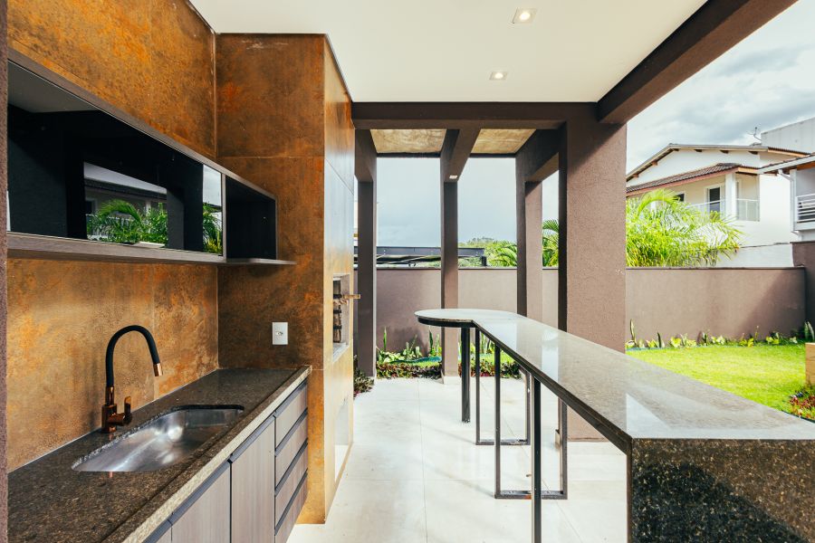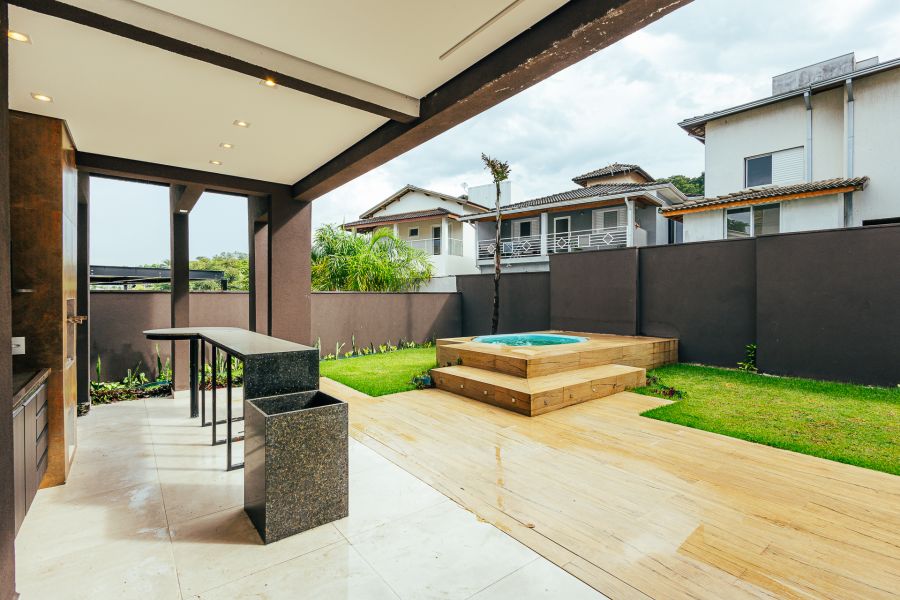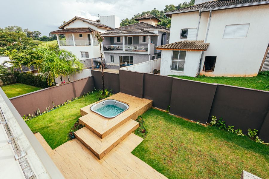 Área externa com churrasqueira, lavabo e quintal espaçoso com ofurô